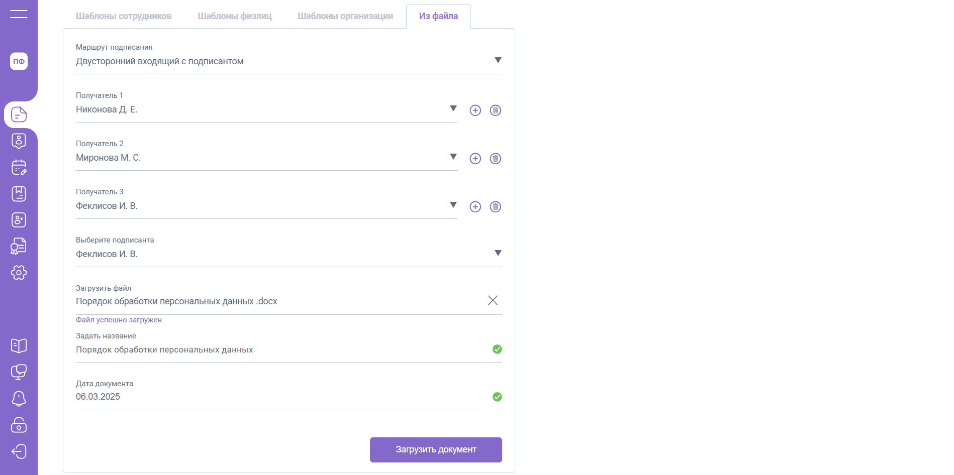 5. После заполнения всех обязательных полей нажмите «Загрузить документ»