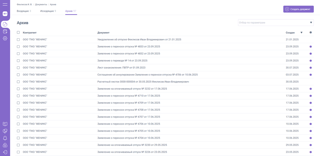 3. «Архив» – содержит список документов, которые завершили маршрут документооборота и больше не требуют каких – либо действий