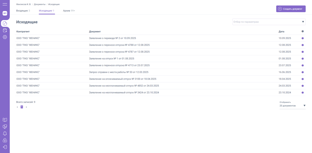2. «Исходящие» – содержит список документов, которые требуют действий со стороны вашего Контрагента