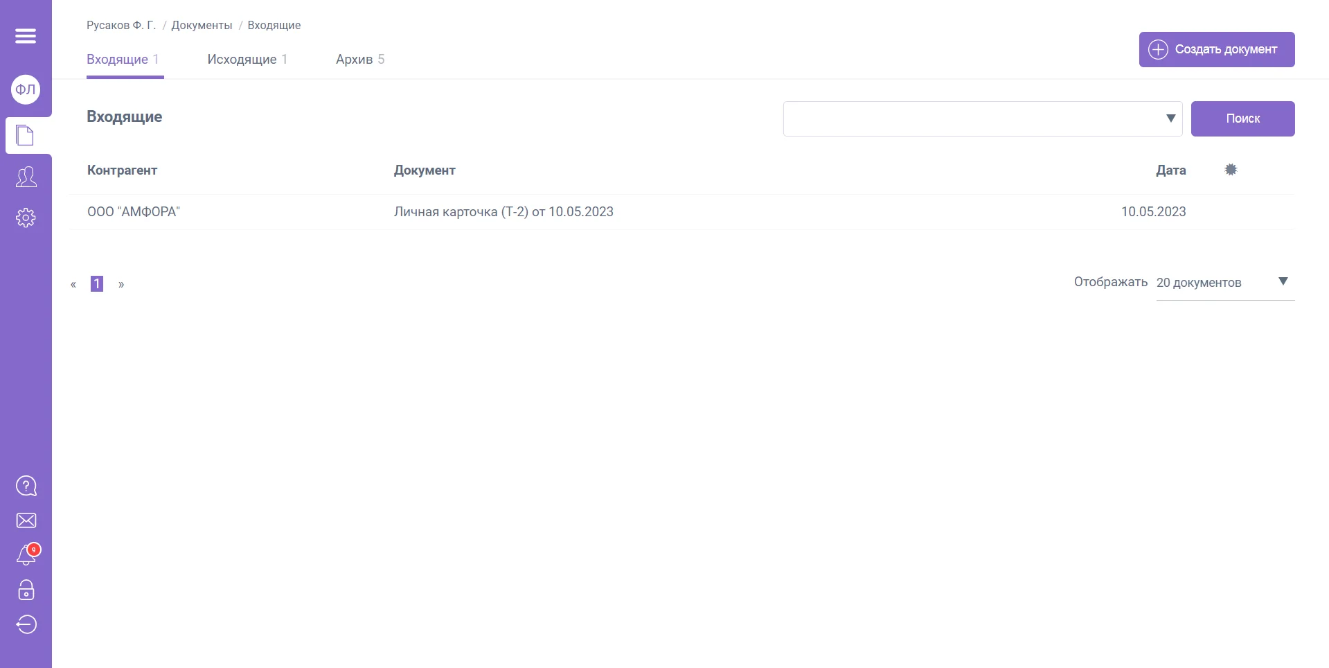 Создание нового документа доступно во всех папках раздела «Документы».