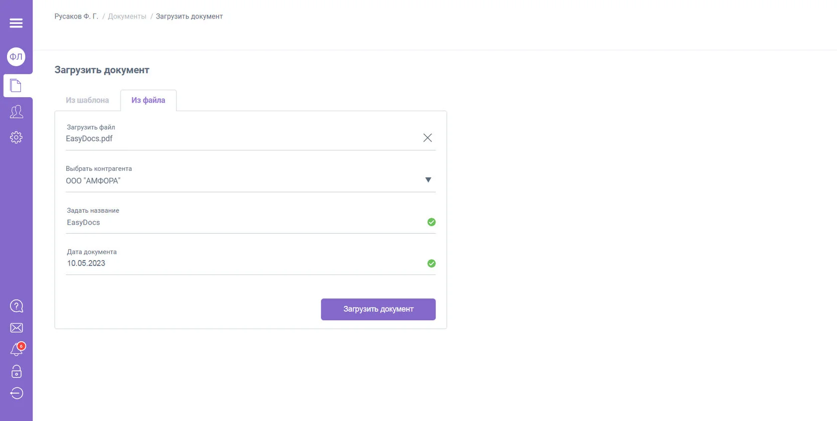 После заполнения обязательных полей нажмите кнопку «Загрузить документ».