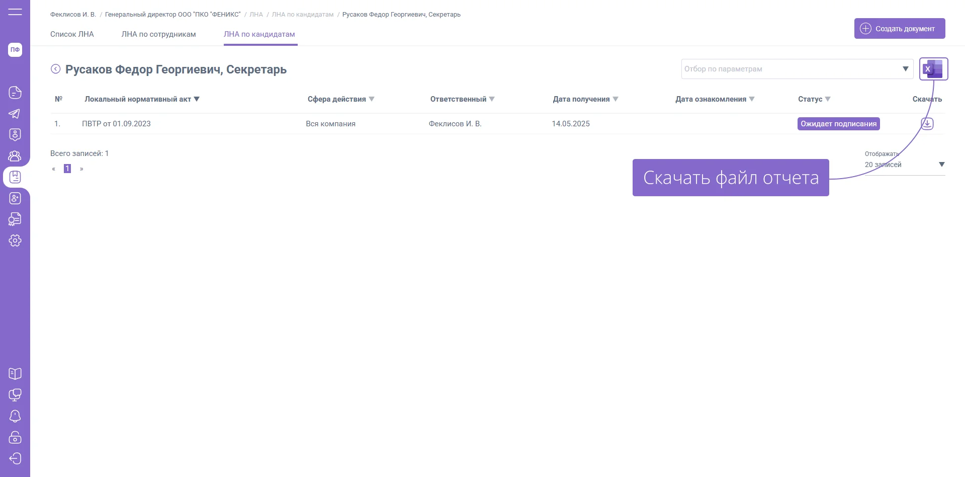 Отчет будет содержать данные по всем сотрудникам, которым были направлены ЛНА.