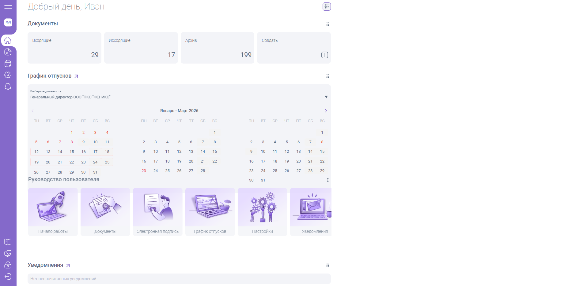 - Руководство - быстрый доступ к инструкциям, например, по работе с документами