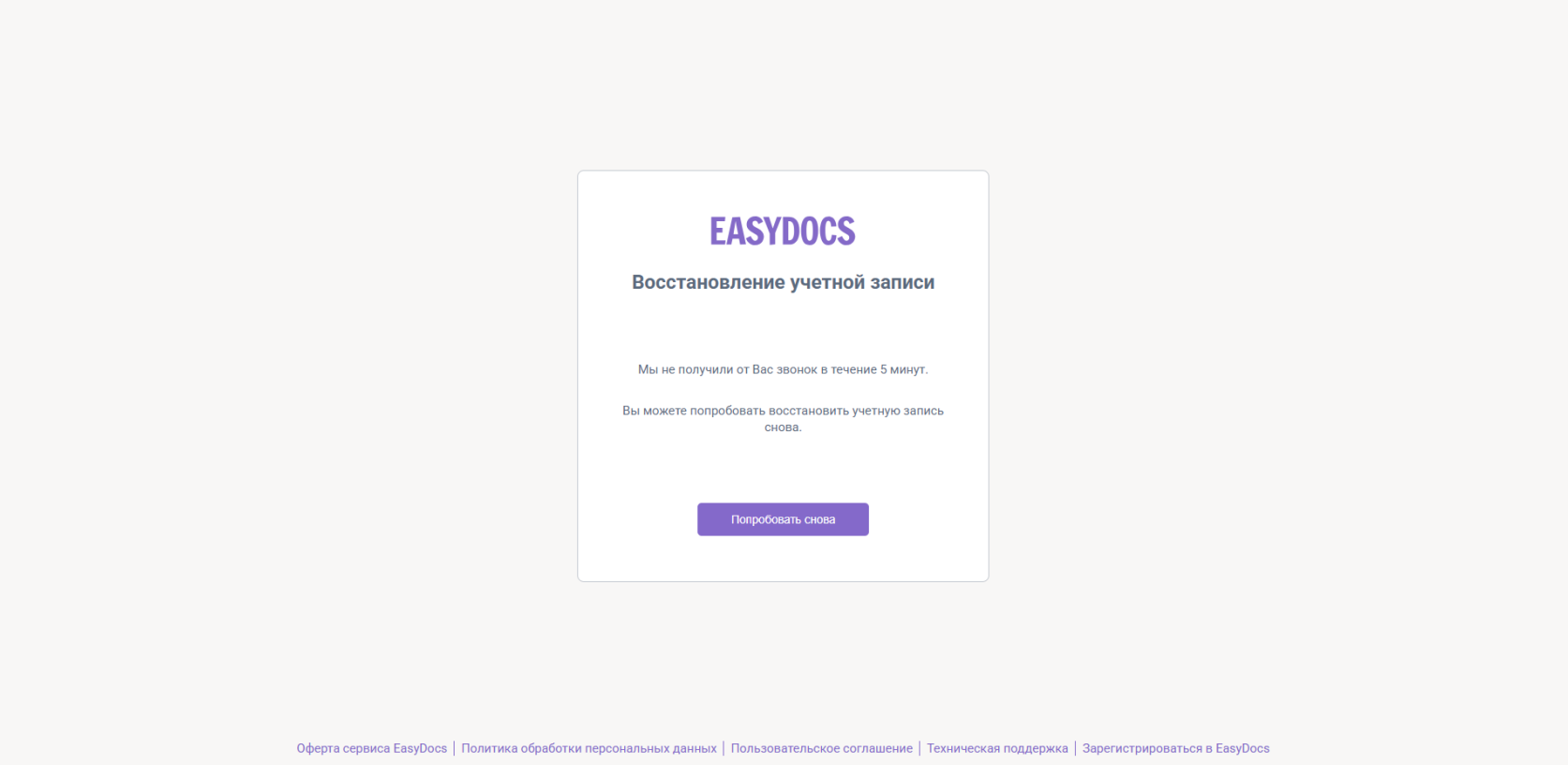 Если звонок не поступит в течение 5 минут - процесс изменения учетной записи потребуется начать заново.