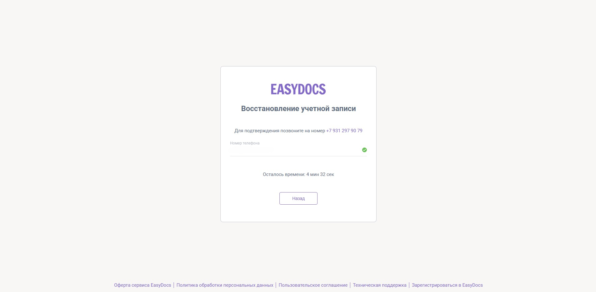 4. С указанного контактного номера совершите звонок на номер +7 931 297 90 79 в течение 5 минут (звонок бесплатный, т.к прервется автоматически).