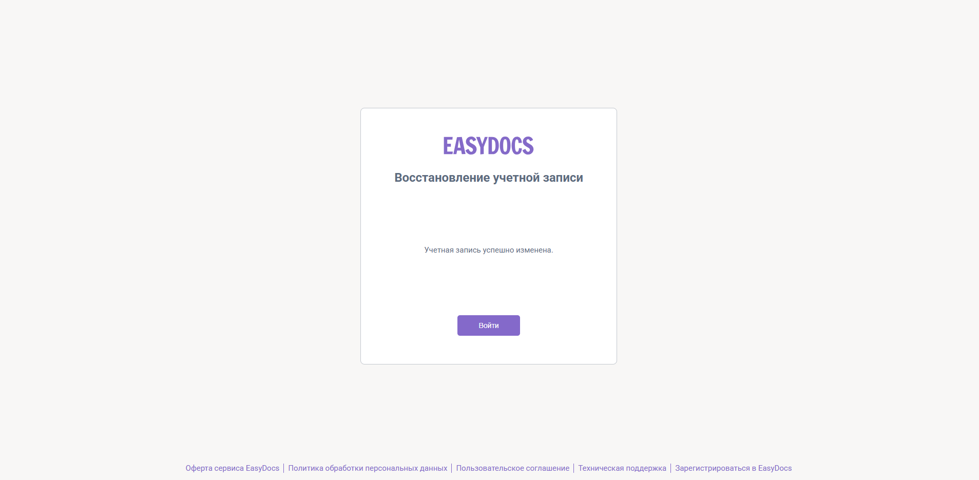 Нажав на "Войти" вы сможете войти в личный кабинет при помощи нового email или воспользоваться формой восстановления пароля.