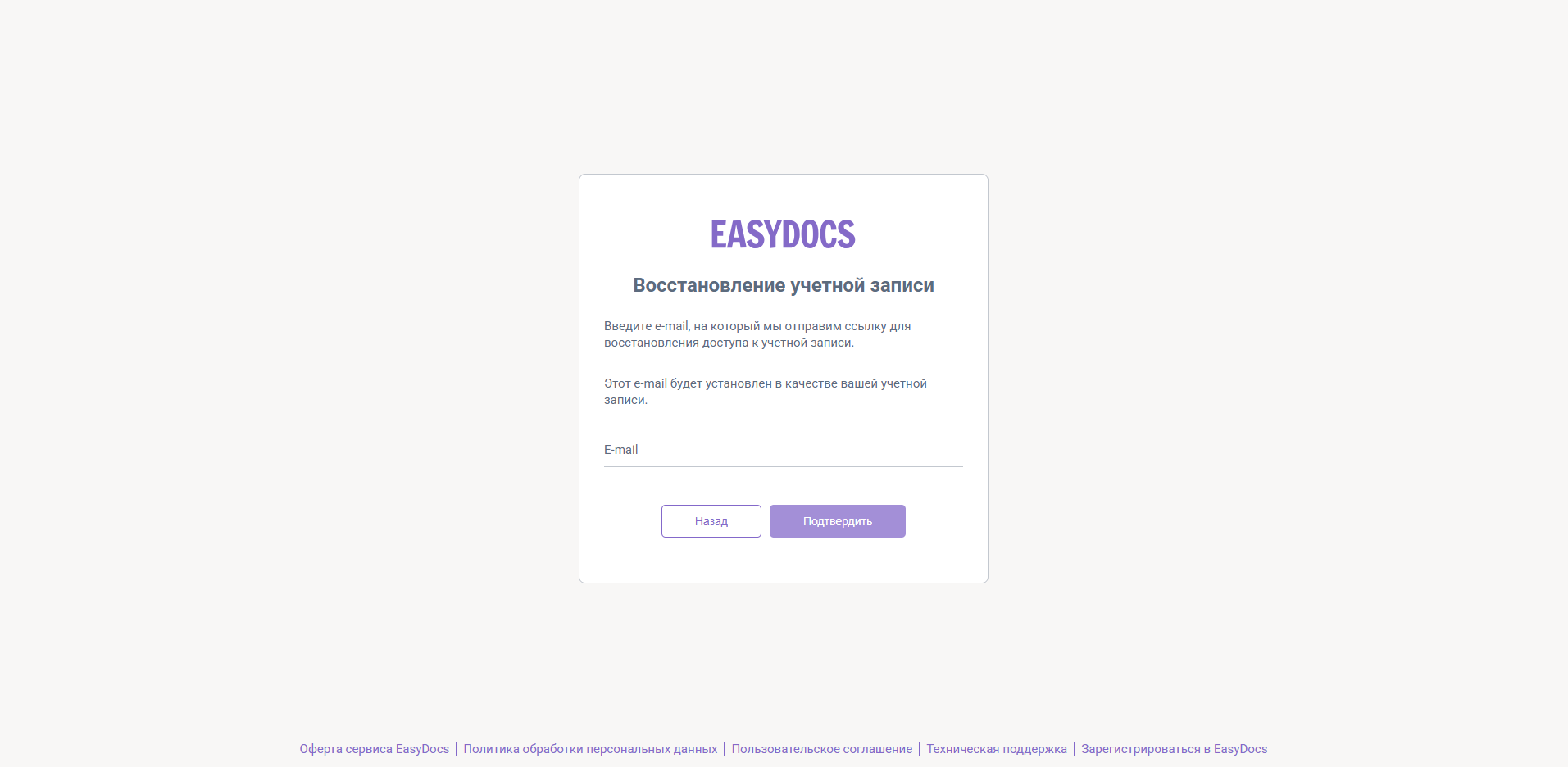 Если вы забыли email, который использовали для входа, восстановите доступ на странице авторизации:
