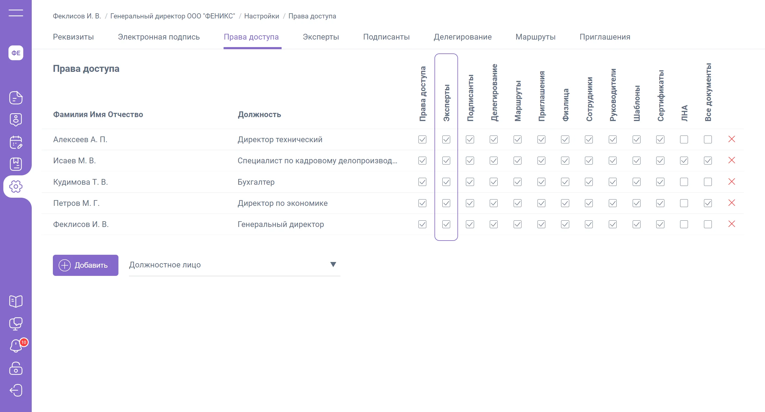 Эксперты — должностному лицу будет доступен раздел «Эксперты» с возможностью добавления и редактирования уже имеющихся Экспертов Вашей организации.