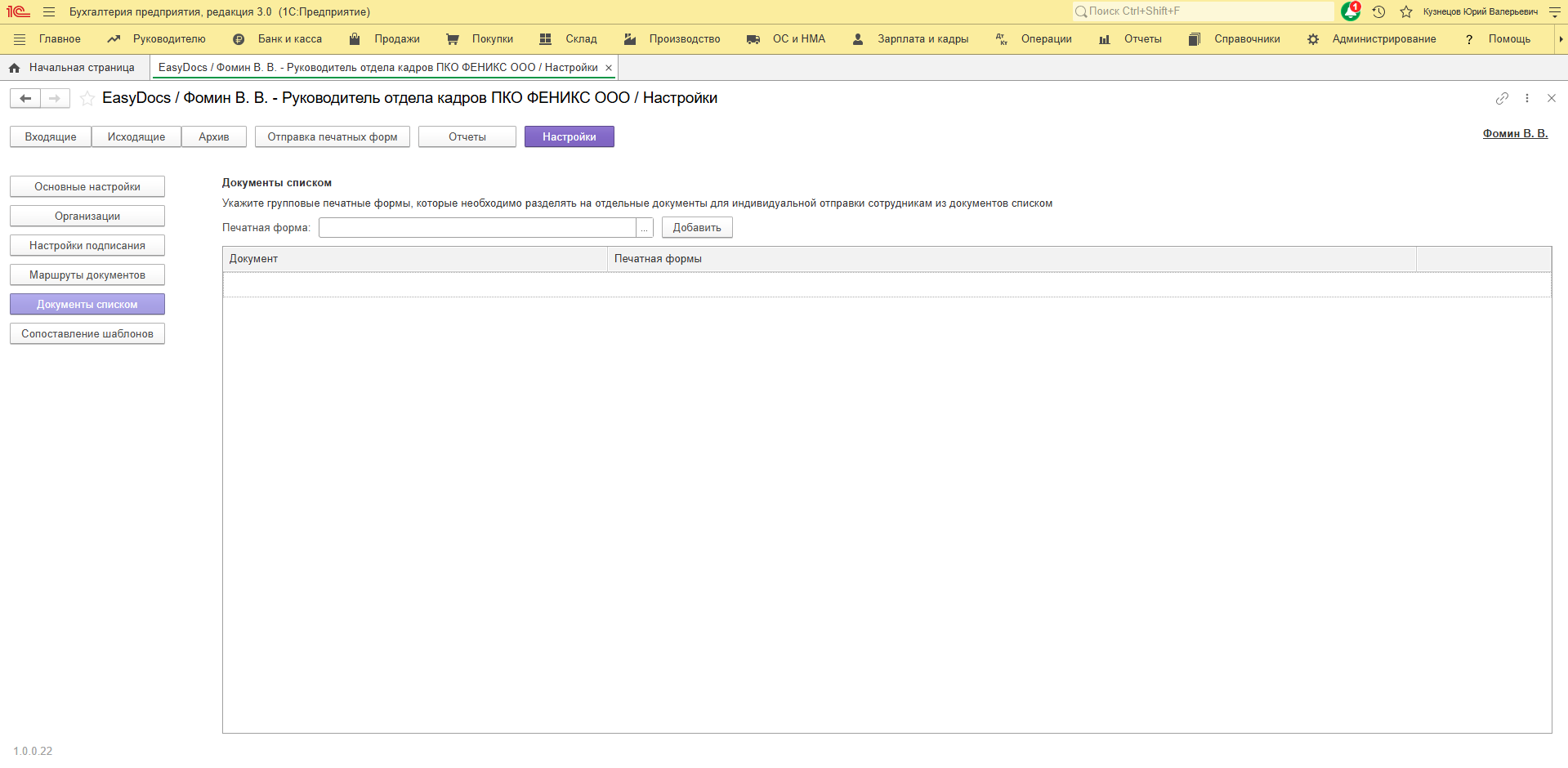 При отправке печатных форм, которые были добавлены в данный список, каждому сотруднику будет направлена индивидуальная печатная форма.