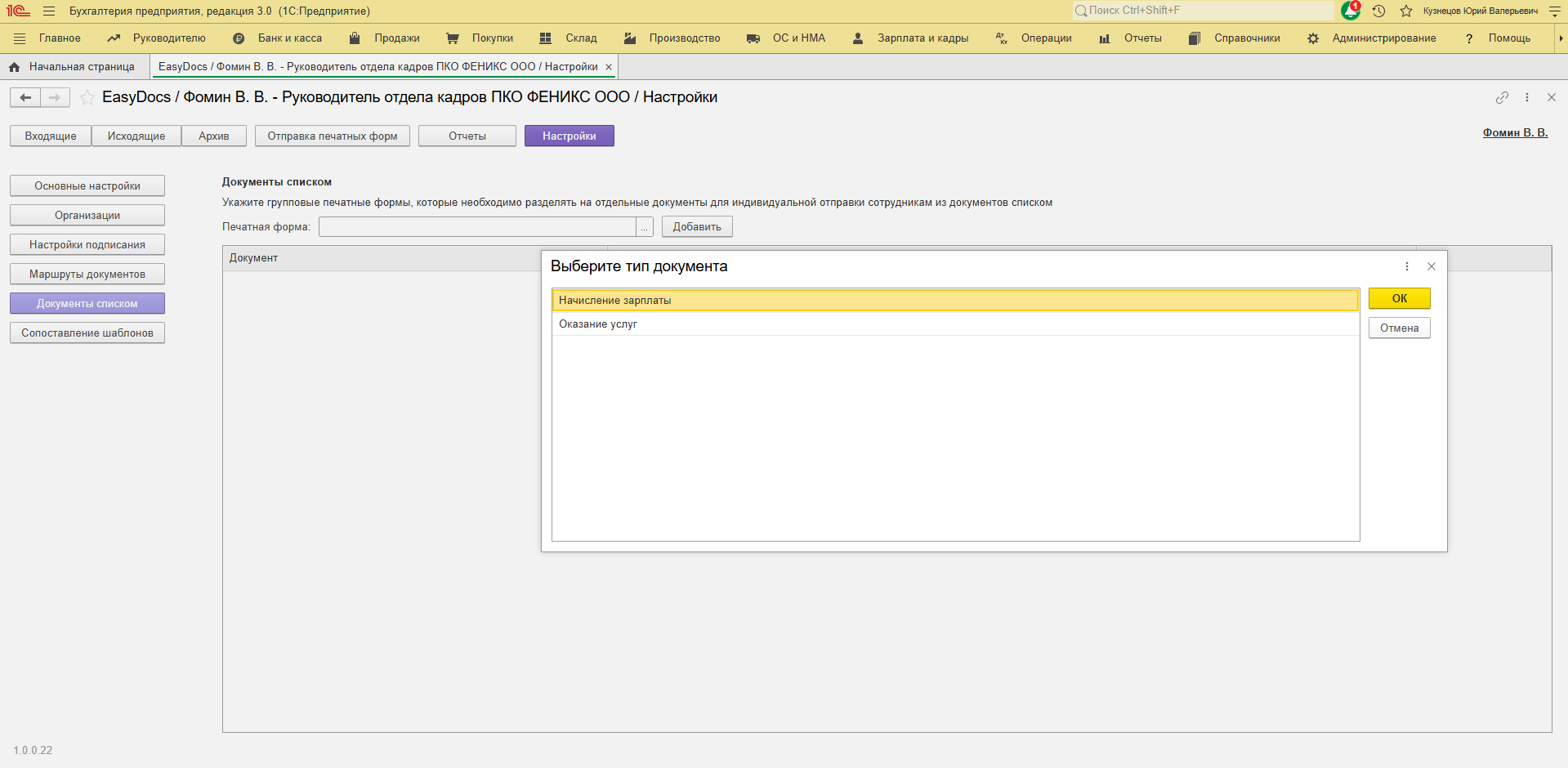- Вы добавляете эту печатную форму в настройках расширения EasyDocs в разделе "Документы списком"