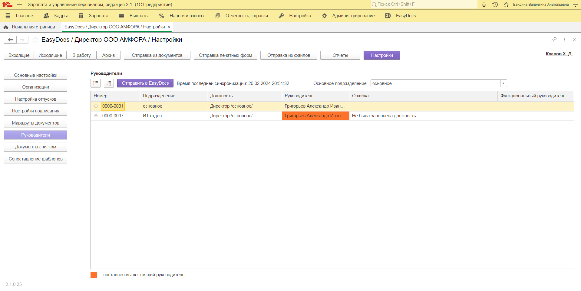 Выгрузка дополнительных руководителей в EasyDocs