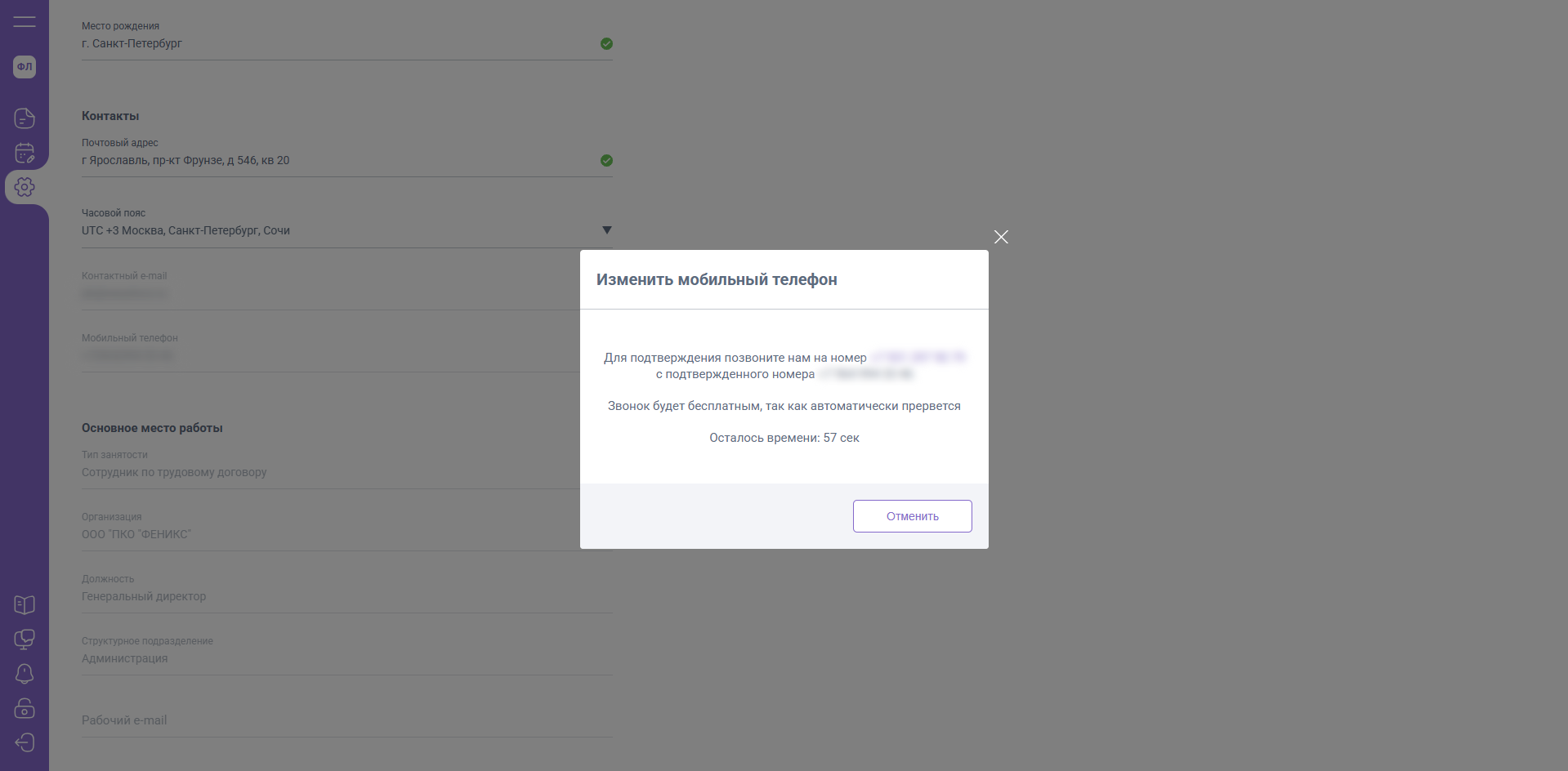При выборе способа подтверждения «Мобильный телефон», потребуется: