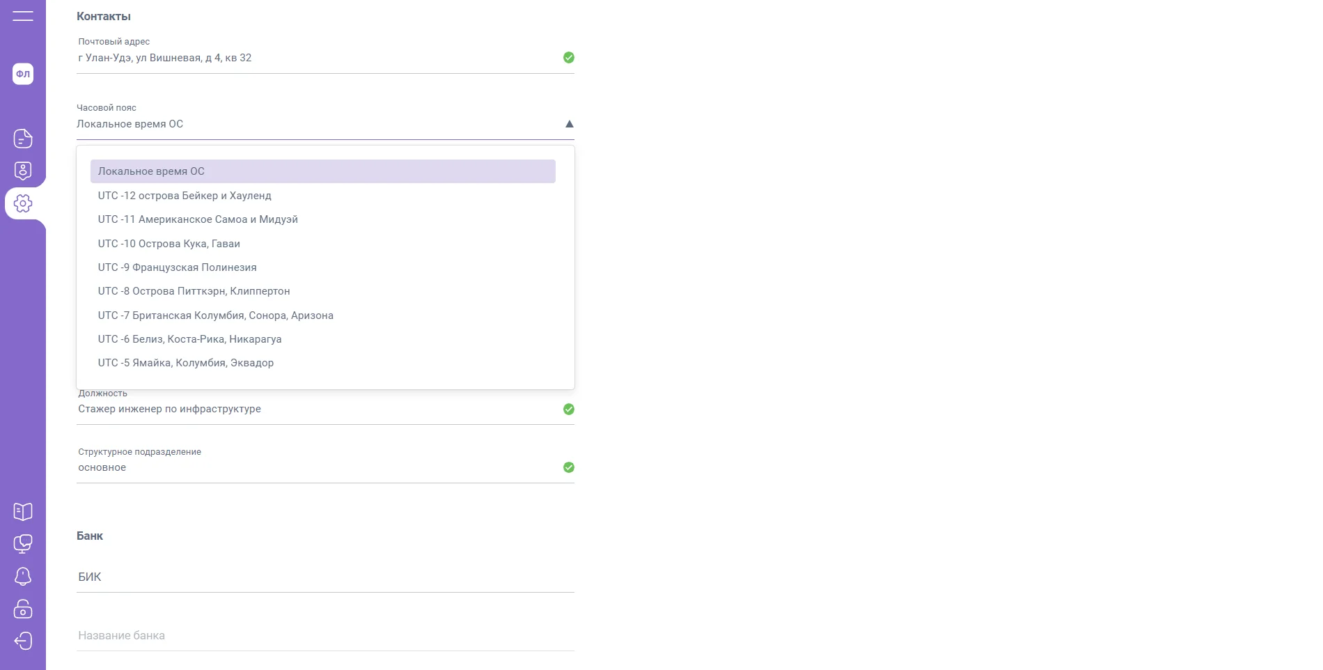 После того как была завершена регистрация в поле «Часовой пояс» по умолчанию устанавливается локальное время Вашей операционной системы.
