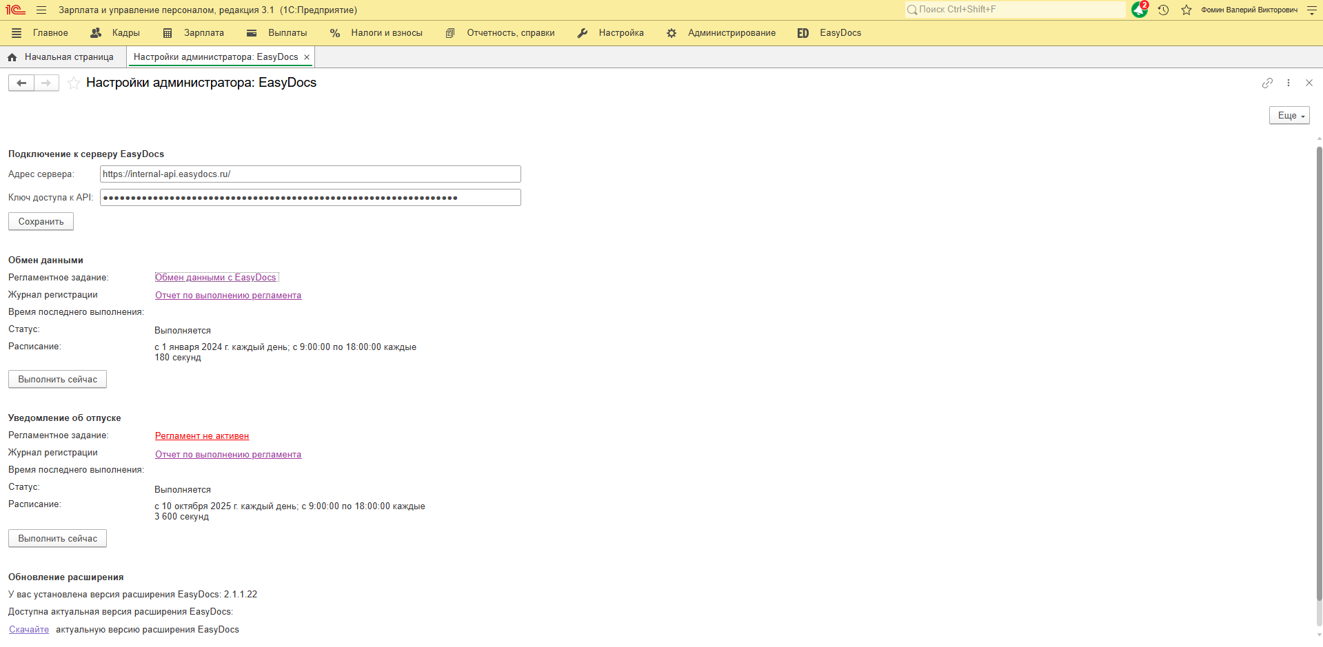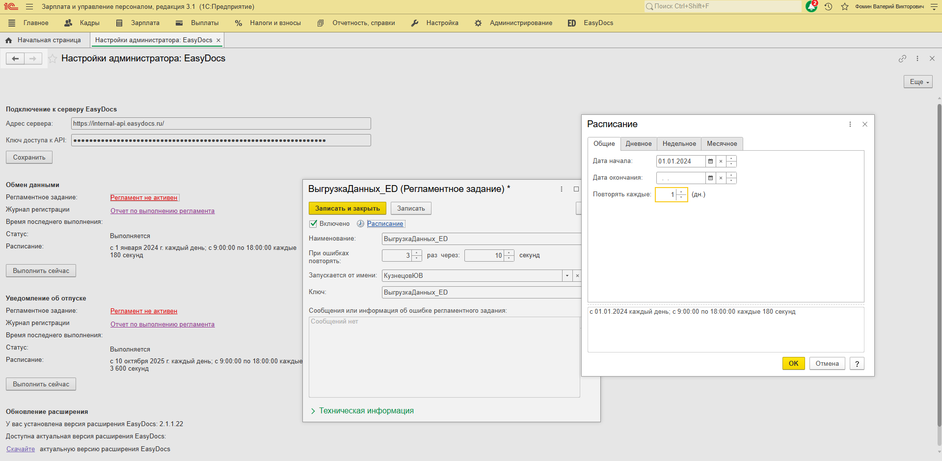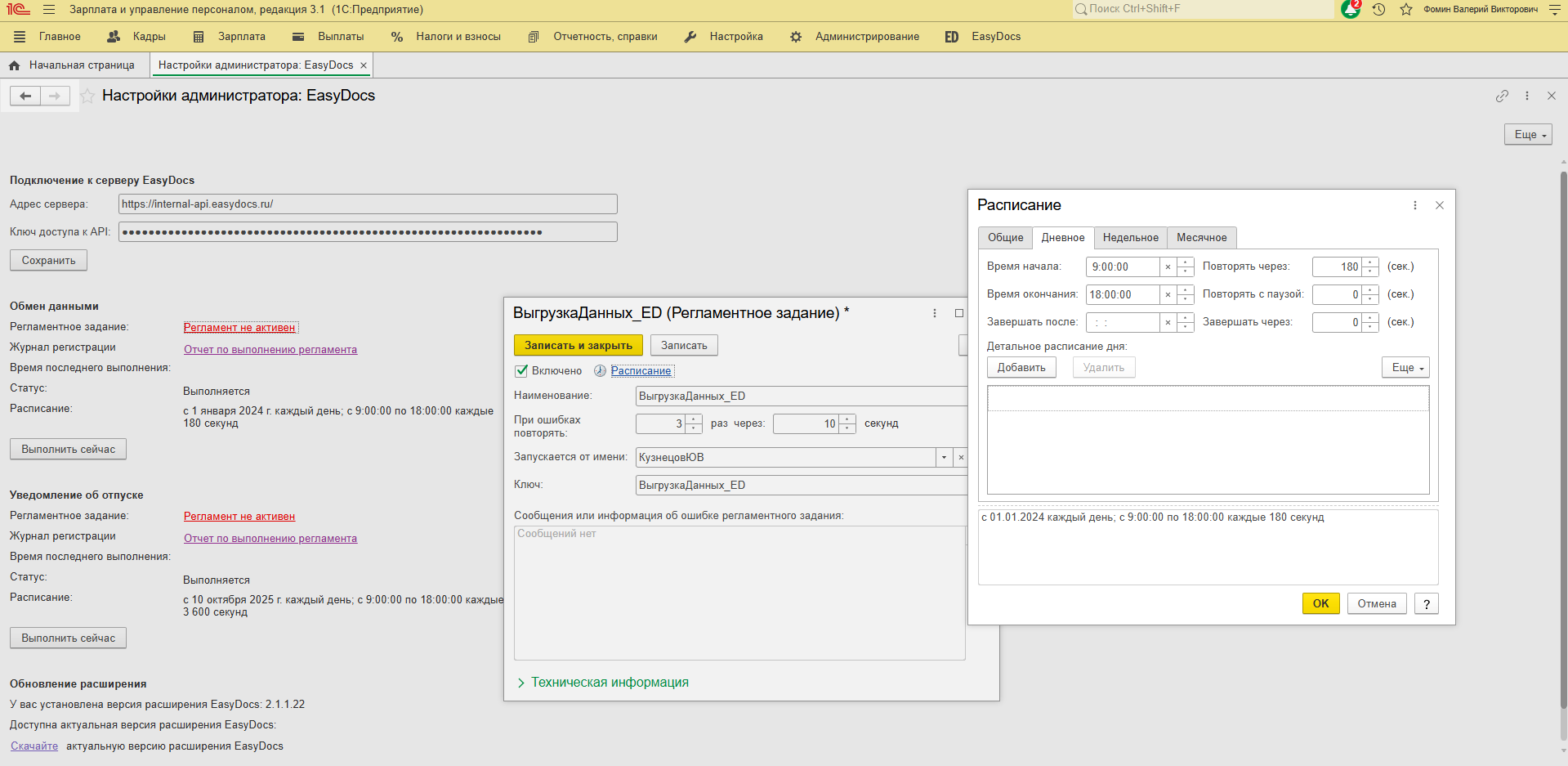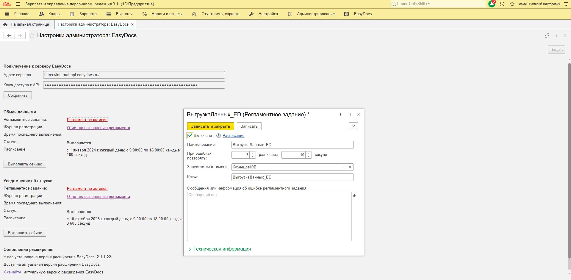 Настройка регламентного задания "Обмен данными с EasyDocs"