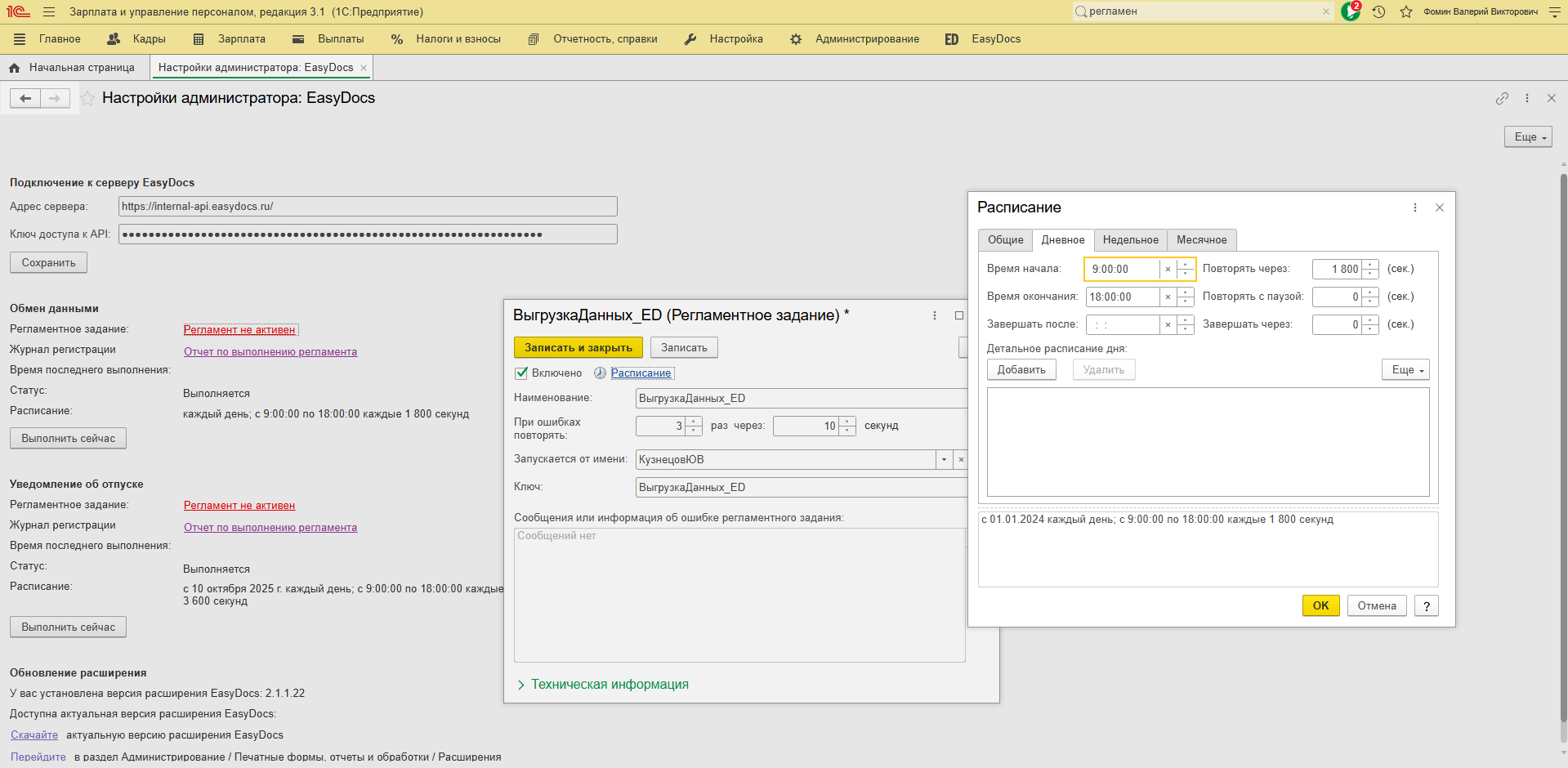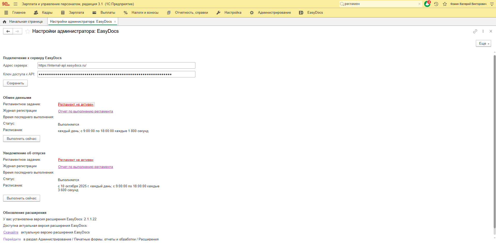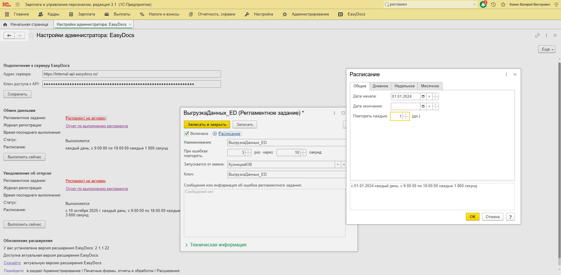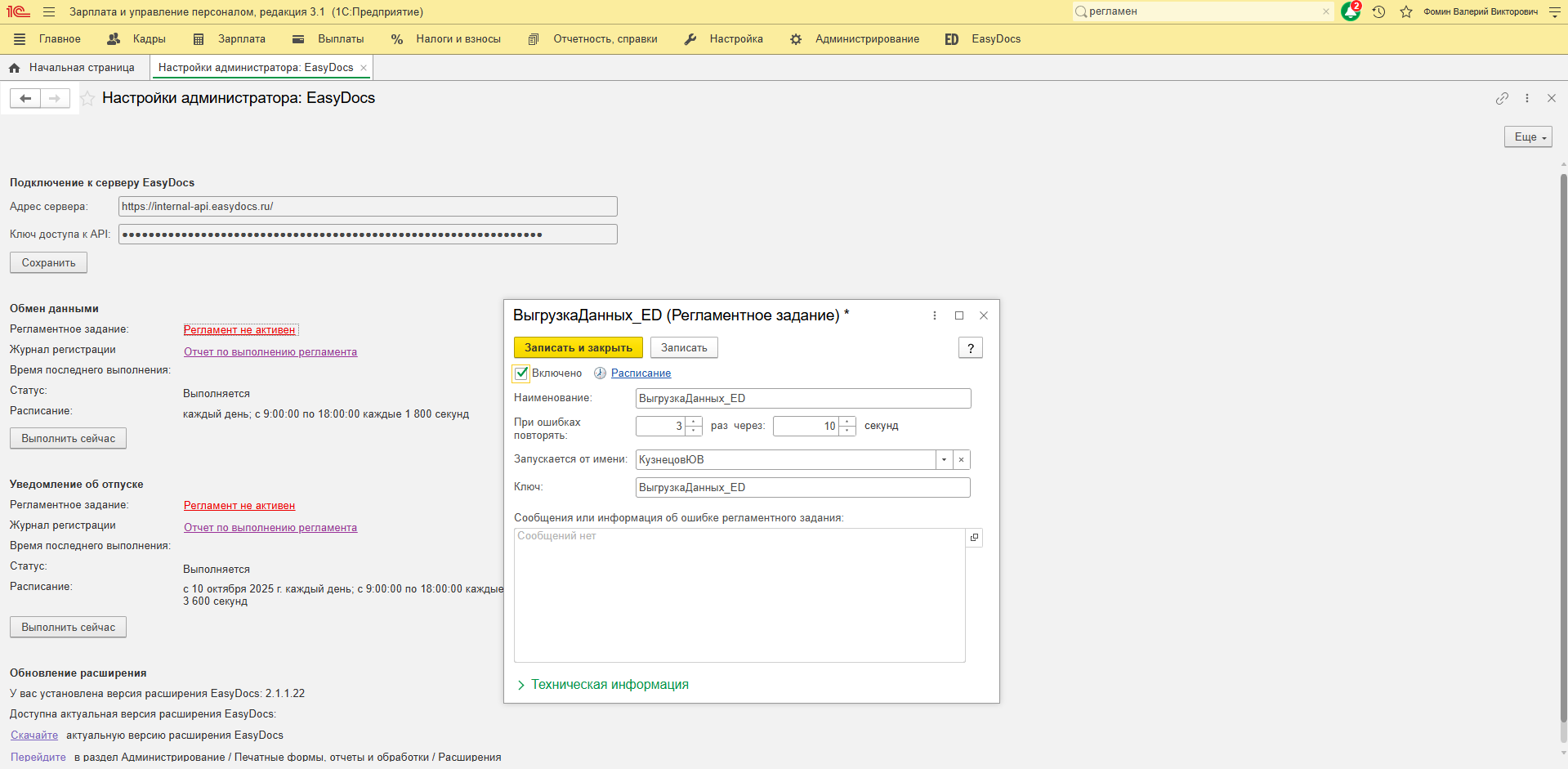 Настройка регламентного задания "Обмен данными с EasyDocs"