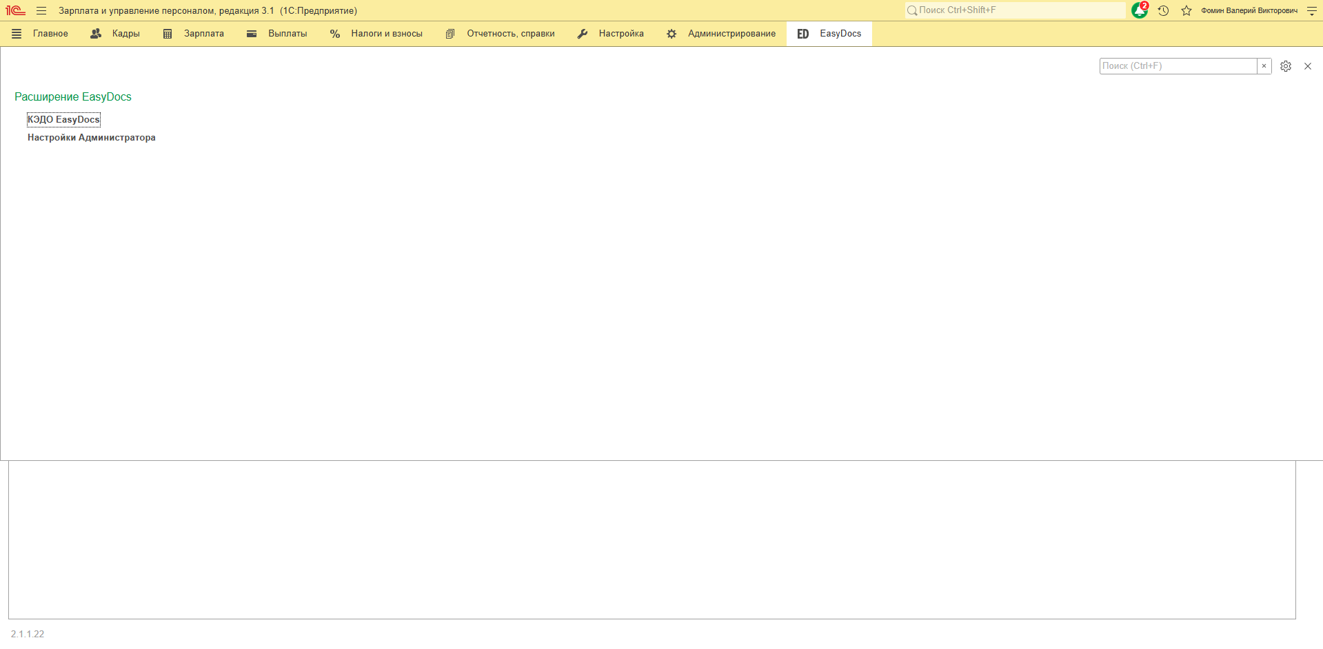 - Кликните на пункте EasyDocs в верхнем горизонтальном меню