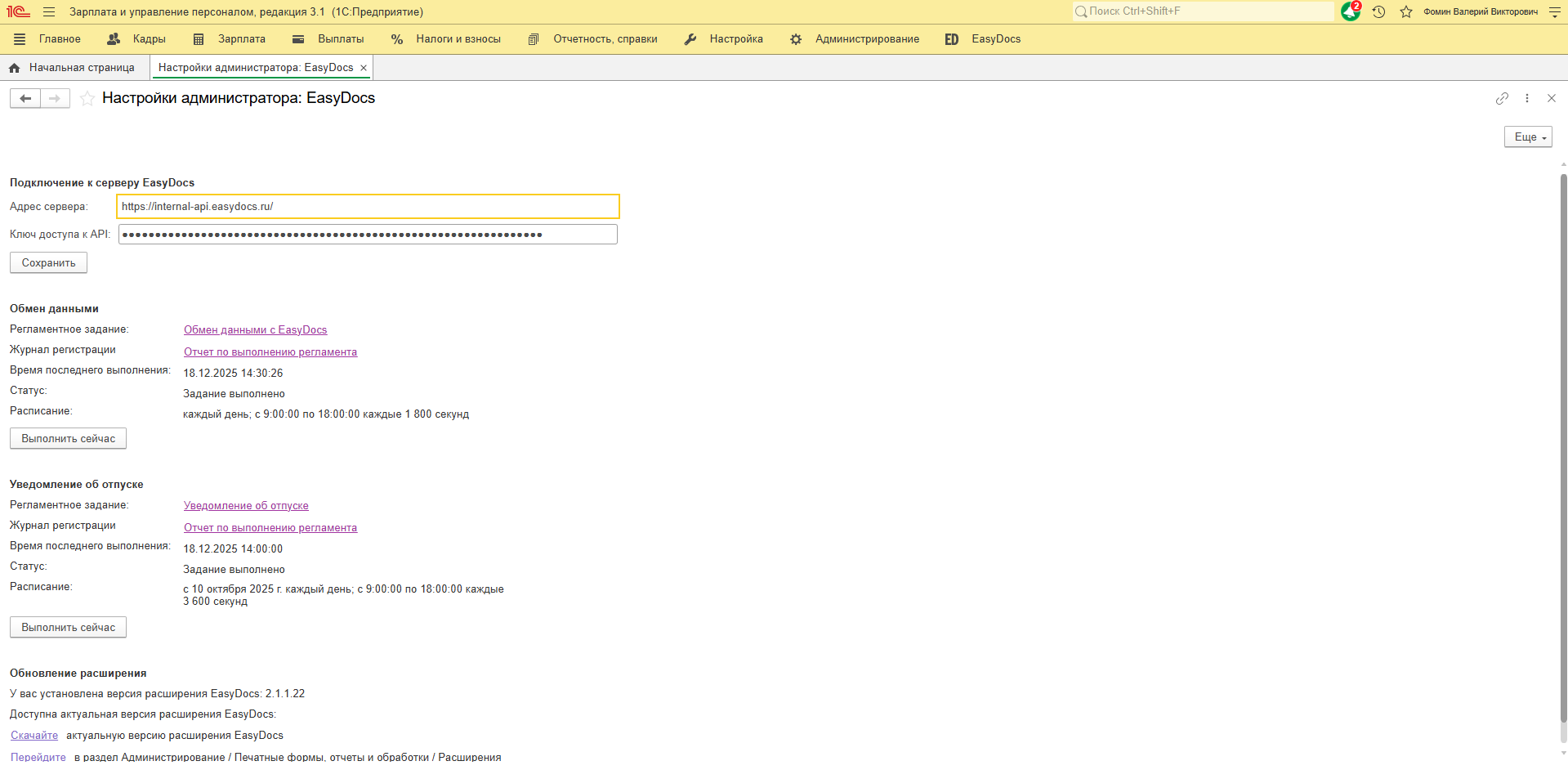 - Адрес сервера - заполняется автоматически в расширении: https://internal-api.easydocs.ru/