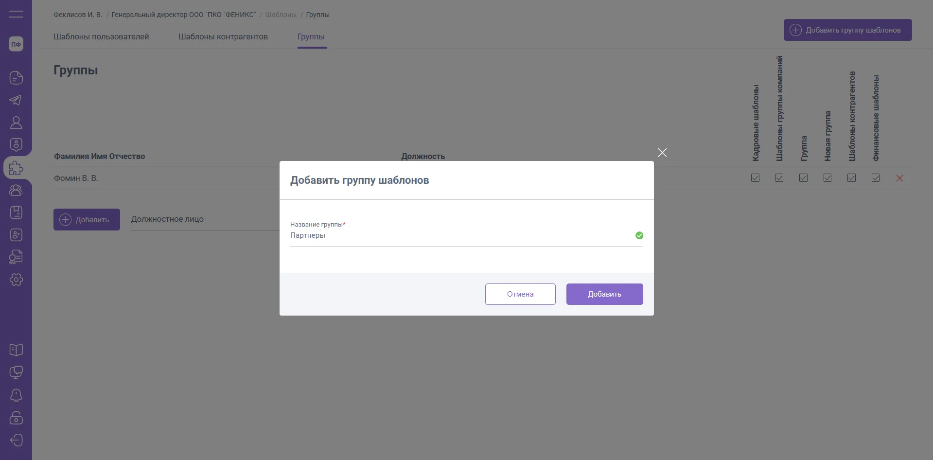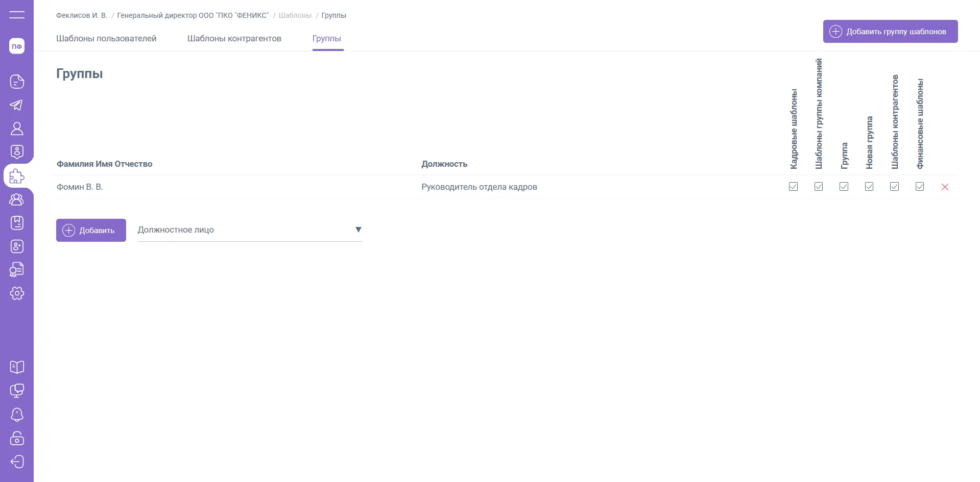 Новая группа шаблонов будет отображаться для назначения прав доступа в разделе «Группы».