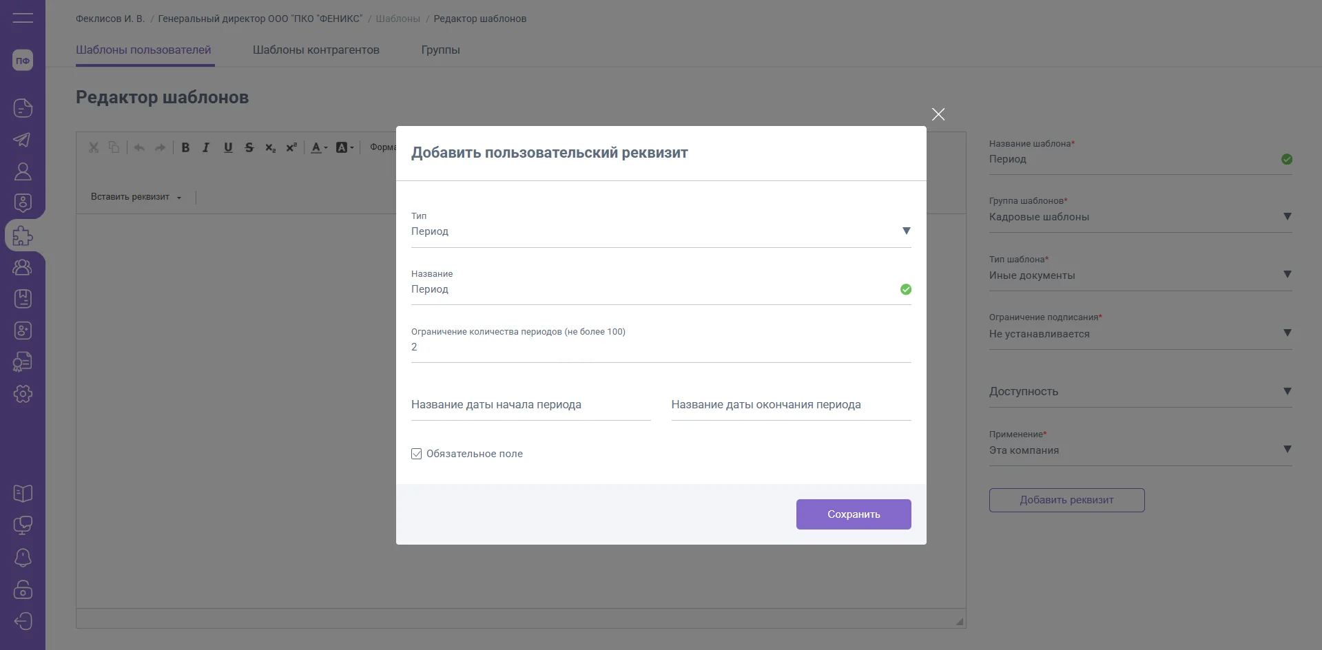 При формировании документа пользователь не сможет превысить установленное Вами ограничение по количеству добавляемых периодов.