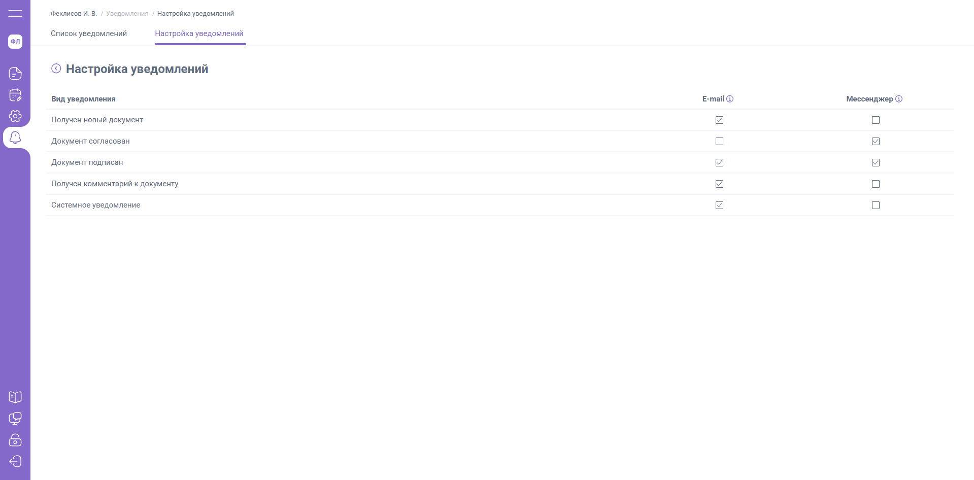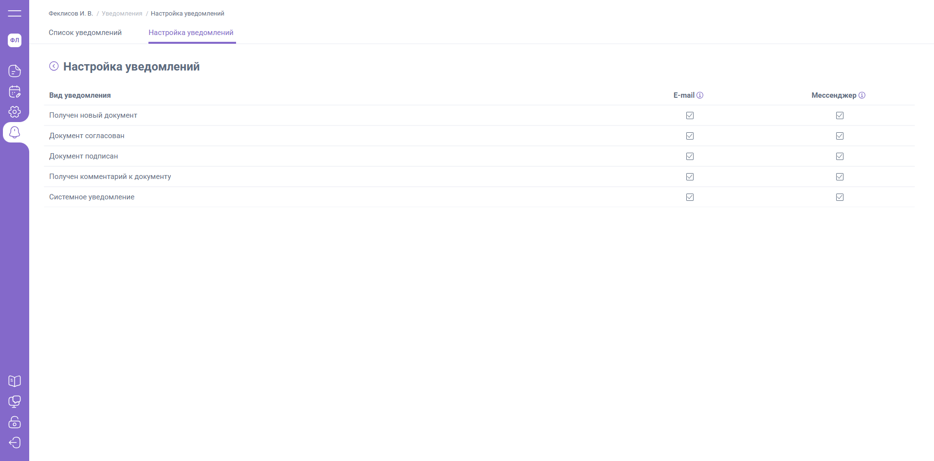 В разделе «Уведомления» на вкладке «Настройка уведомлений» вы можете управлять получением уведомлений по электронной почте или в Telegram-бот.