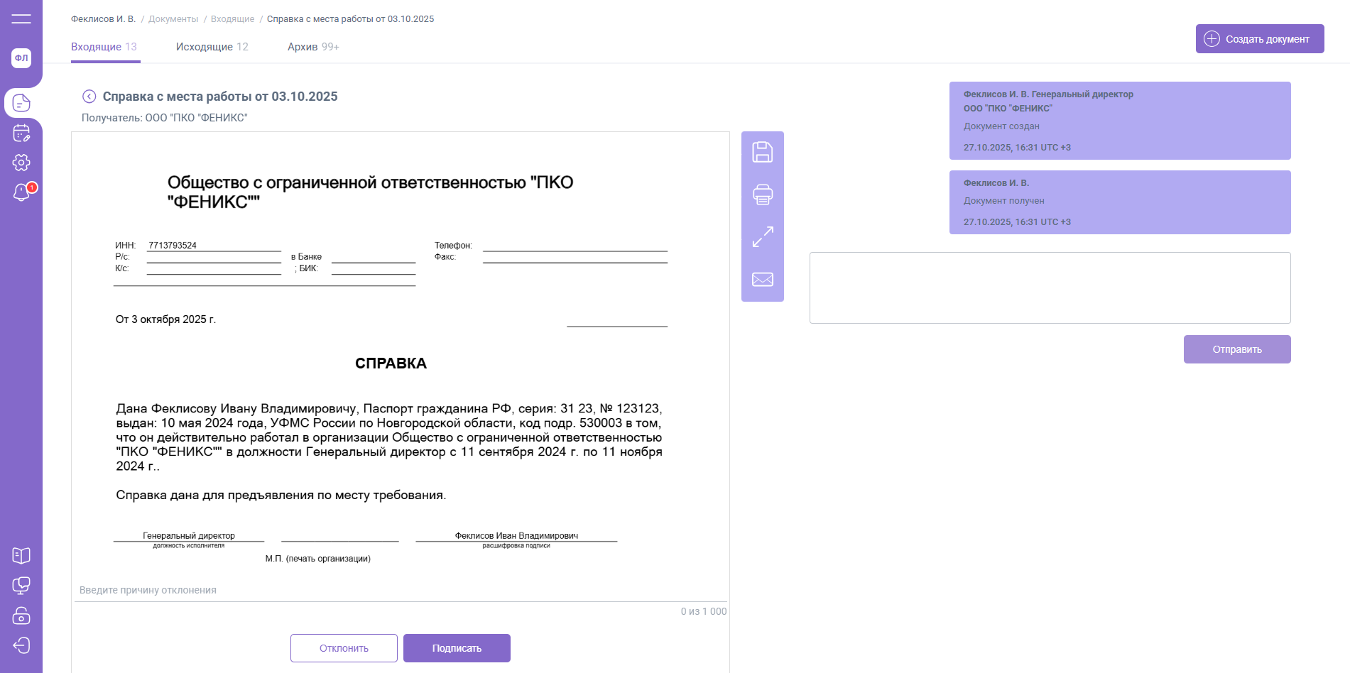 При нажатии на уведомление будет осуществлен переход к просмотру документа.