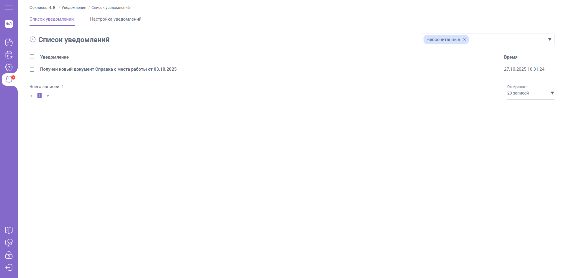 В разделе «Настройки» / «Список уведомлений» автоматически устанавливается отображение непрочитанных вами уведомлений.